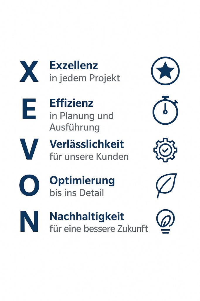 Als modernes Bauunternehmen mit Sitz in Willich steht XEVON für nachhaltiges Bauen, innovative Lösungen und eine partnerschaftliche Zusammenarbeit auf Augenhöhe. Mit einem erfahrenen Team aus über 25 Fachkräften realisieren wir Projekte jeder Größenordnung – zuverlässig, effizient und immer mit dem Blick fürs Detail.